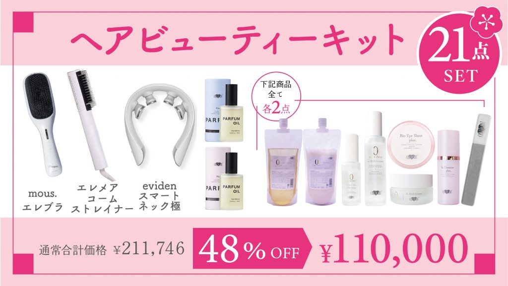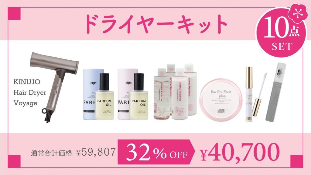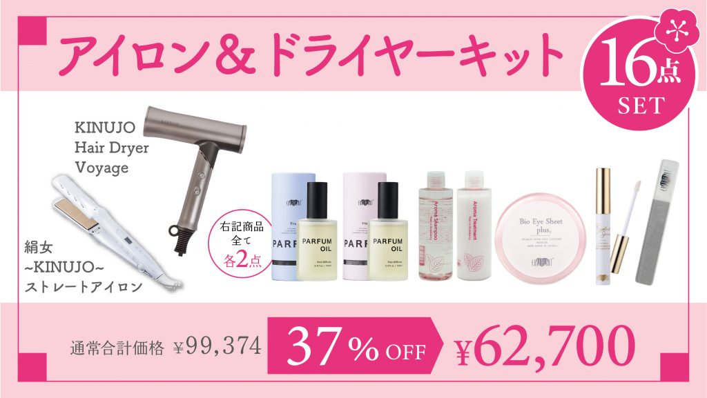 人気のKINUJOドライヤー&ストレートアイロンが入った『アイロン&ドライヤーキット』など多彩なラインナップ。