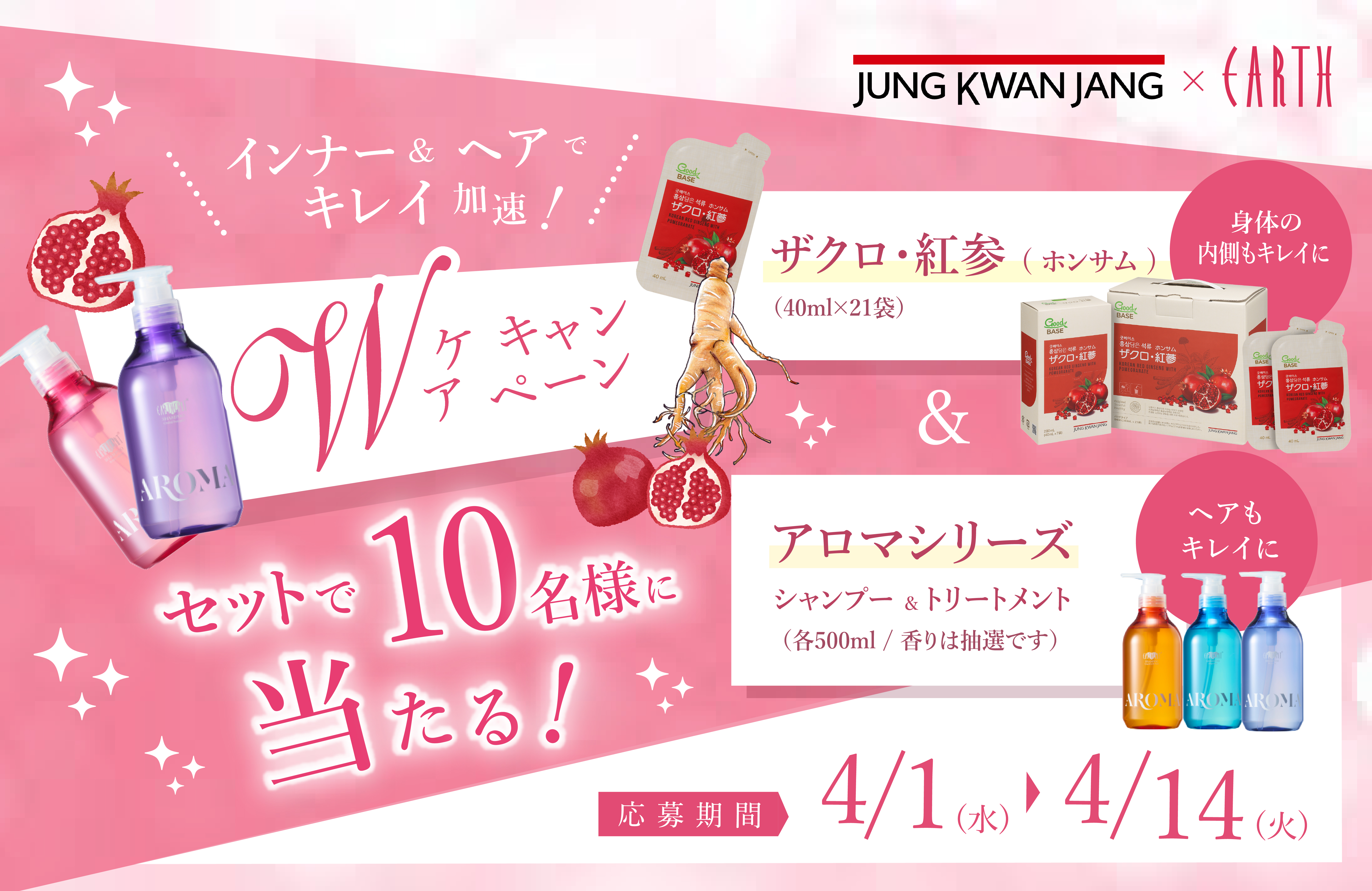 ・賞品の発送は、株式会社アースホールディングス または 株式会社韓国人参公社ジャパンより発送いたします。