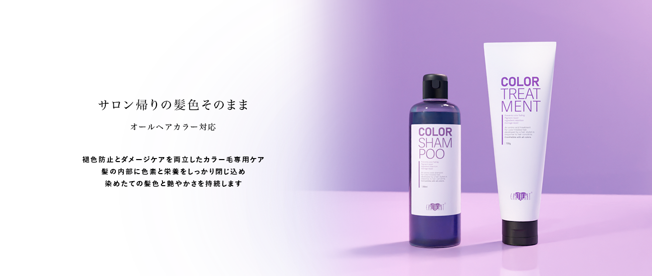 髪の毛1本1本を補修し、ハリのあるしなやかな髪へ。ブルーバイオレットの色素を補給することで退色を防止し、ヘアカラーを美しく保ちます。